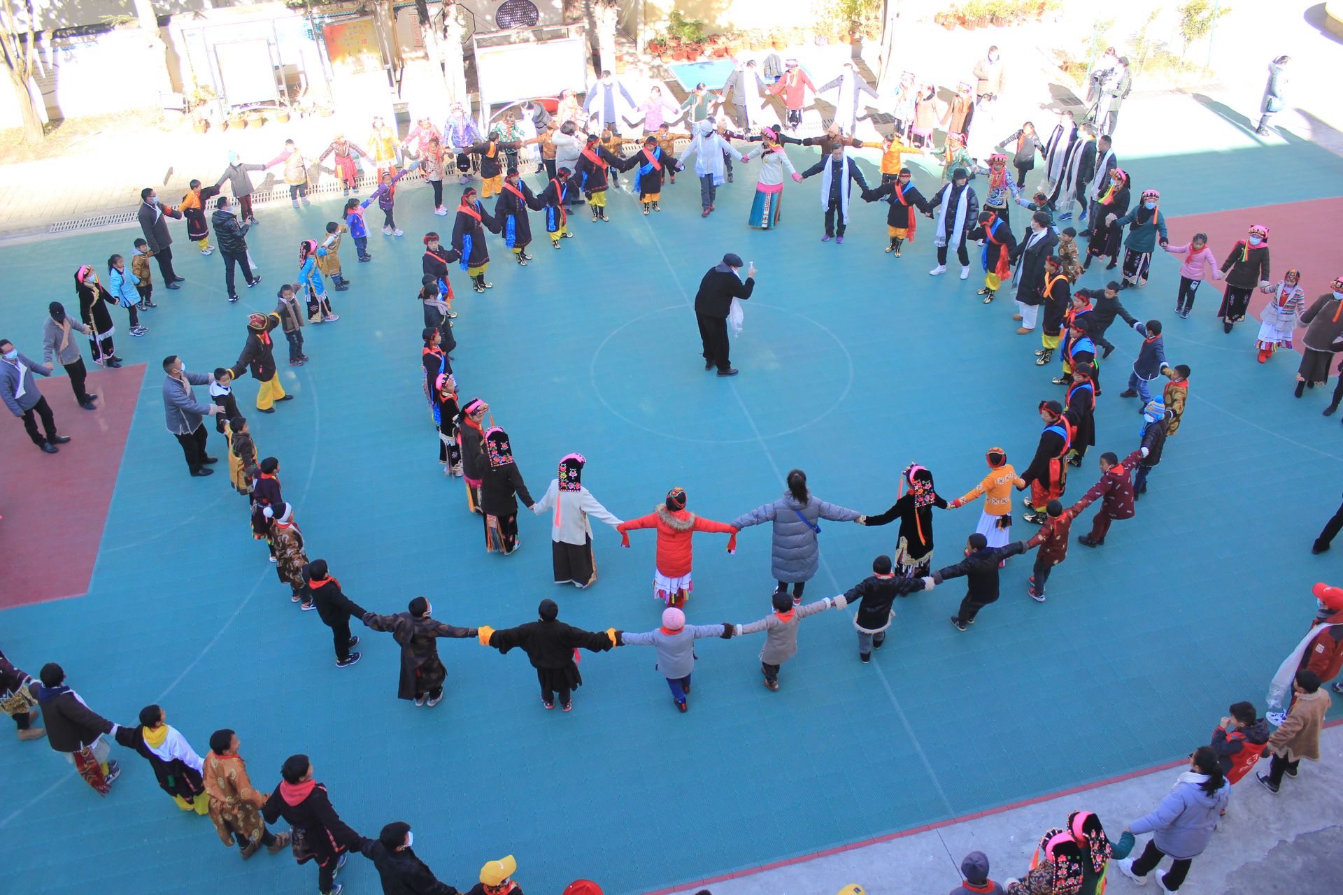 活動結束后同學們一起跳起了歡快豪邁的藏族鍋莊舞,操場上乒乓球的一記扣球,讓志愿者們仿佛也回到了童年時光。
