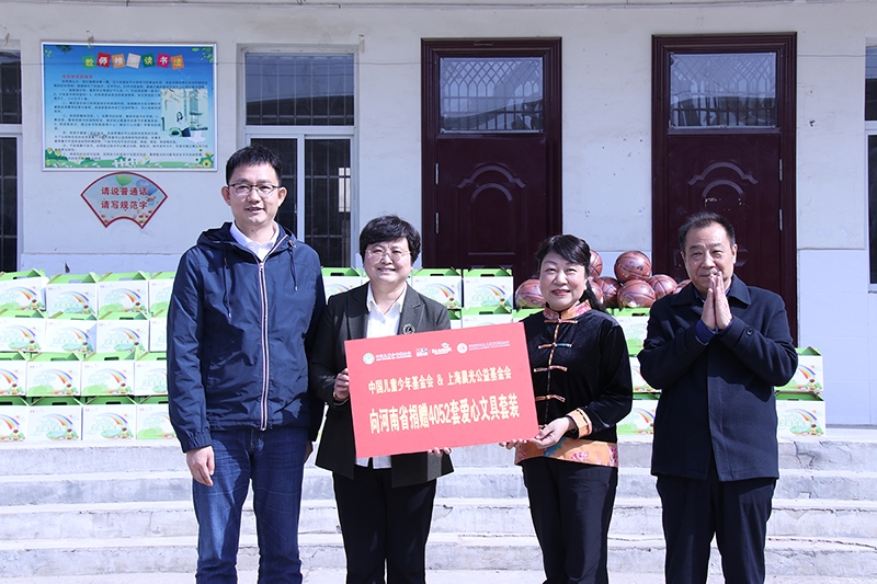 活動(dòng)中,中國兒基會(huì)副秘書長王海靜、上海晨光文具洛陽分公司總經(jīng)理王中樞共同向河南省捐贈(zèng)價(jià)值近40萬元的4052套愛心文具套裝與體育用品,河南省婦女兒童發(fā)展基金會(huì)秘書長武峰峰、孟津區(qū)政協(xié)主席陸萬強(qiáng)接受捐贈(zèng)。