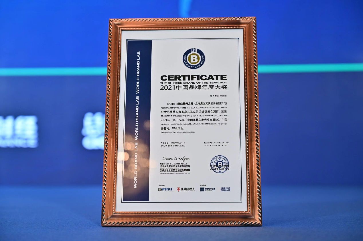 中國品牌“奧斯卡”獎揭曉!晨光文具榮獲2021年“中國品牌年度大獎文具N0.1”