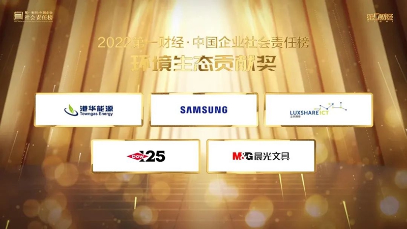 國內文具行業唯一代表!晨光榮獲“2022 第一財經·中國企業社會責任榜”環境生態貢獻獎