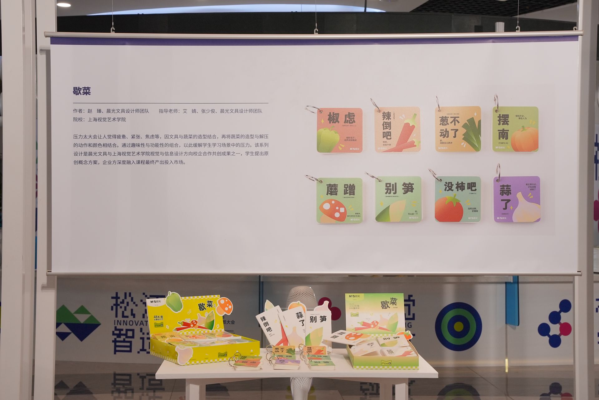 在本次大會現場,晨光就帶來了與上海視覺藝術學院共創的“無所不卷”、“歇菜”等系列的創新產品成果,受到現場眾多關注。