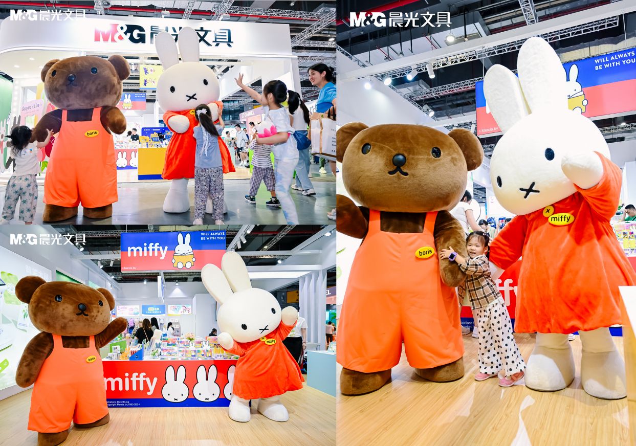 自2006年起,晨光就與荷蘭著名卡通IP米菲開展合作,多年來不斷推陳出新,每年開發和上市多種多樣的米菲主題產品,深受廣大消費者的支持和喜愛。在本次展會現場,晨光特意請來了米菲和她的好朋友小熊鮑里斯進行玩偶巡游活動,這也是鮑里斯第一次在國內舞臺驚喜亮相,引來眾多觀展者駐足圍觀,紛紛與他們合影打卡留念。