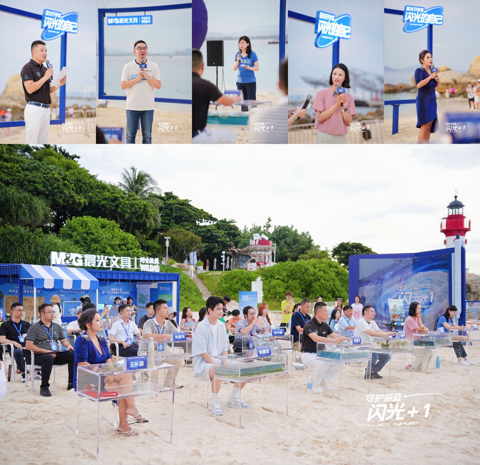 守護深藍,閃光+1,個人的光芒或許微弱,但微光聚攏必將綻放璀璨光芒。儀式最后,大家以晨光“深藍星球”系列PLA 可降解中性筆統一比出“閃光+1”手勢,呼吁每一位心中有光的人,從一支筆、從身邊小事做起,守護我們賴以生存的海洋和地球生態。
