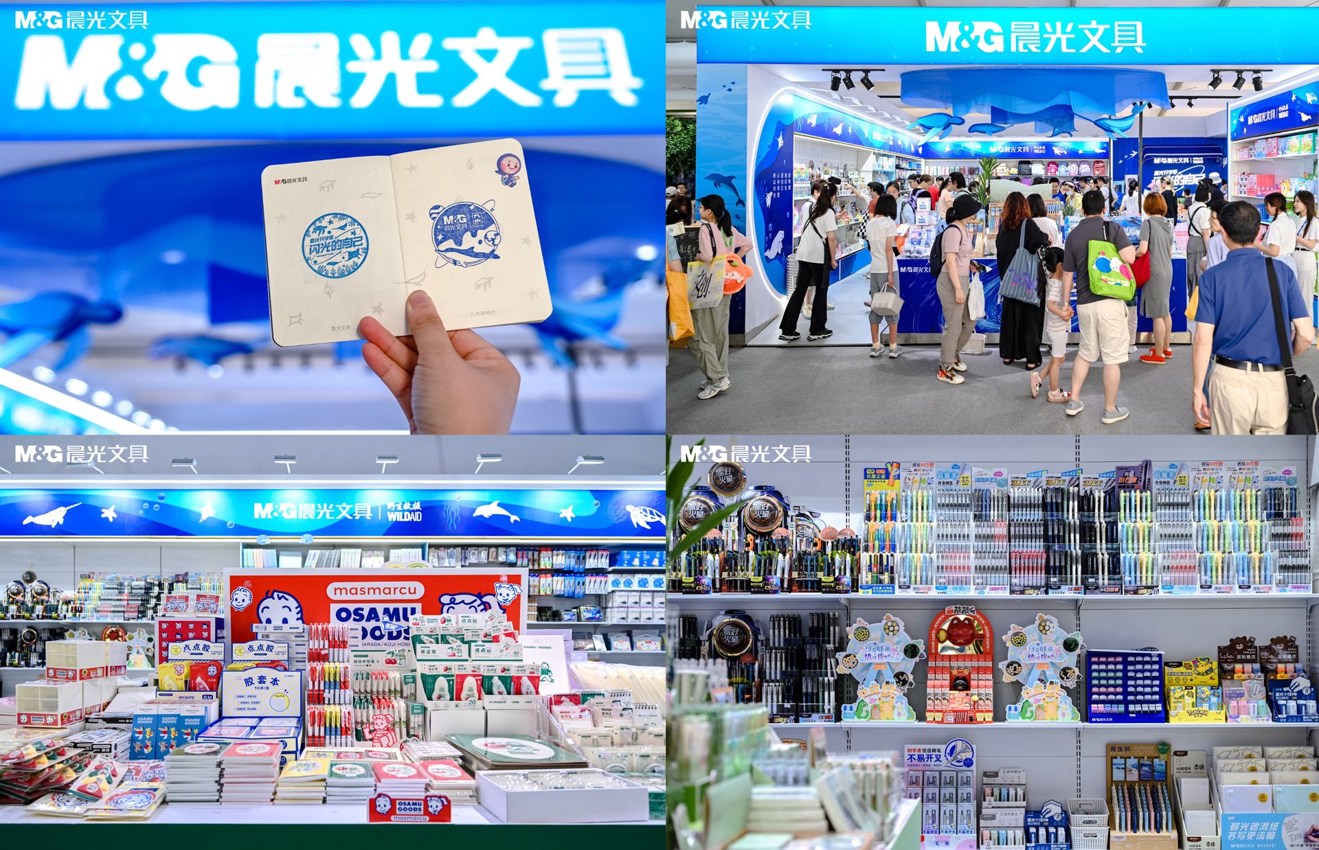 除了開學好物,本次晨光展臺也成為書展一大亮點,沉浸式海洋主題氛圍和豐富有趣的活動成為現場觀眾的熱門打卡處。整個晨光展臺采用藍色海洋主題搭配海洋生物及珊瑚礁創意風格設計,讓消費者身臨其境,強化對重要海洋生物棲息地的保護,呼吁大眾保護生物多樣性。同時,晨光還聯合上海書展、廣州南國書香節主辦方,開啟“專屬護照集章”打卡活動,邀請現場觀眾參與集章互動、打卡,共同開啟書香閃光之旅。