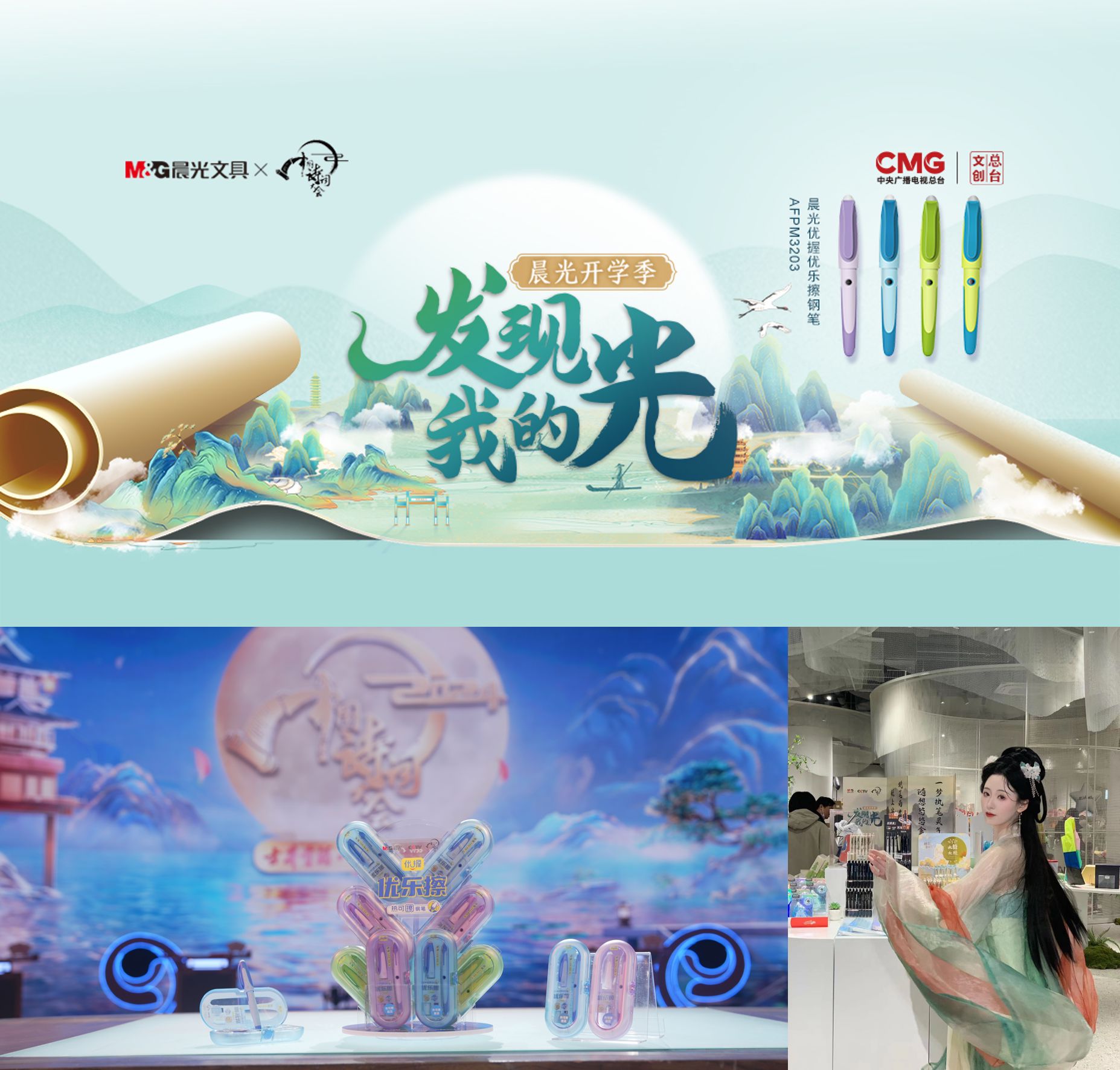 今年春季開學,晨光和CCTV《中國詩詞大會》推出聯(lián)名產(chǎn)品,不僅攜手康震老師為廣大學子送上了開學寄語,還在網(wǎng)紅文創(chuàng)地標上海徐家匯書院進行古風快閃及全民飛花令活動,用詩詞文化與年輕人積極溝通,借古風潮流和熱門文化節(jié)目提升產(chǎn)品體驗和情緒價值。
