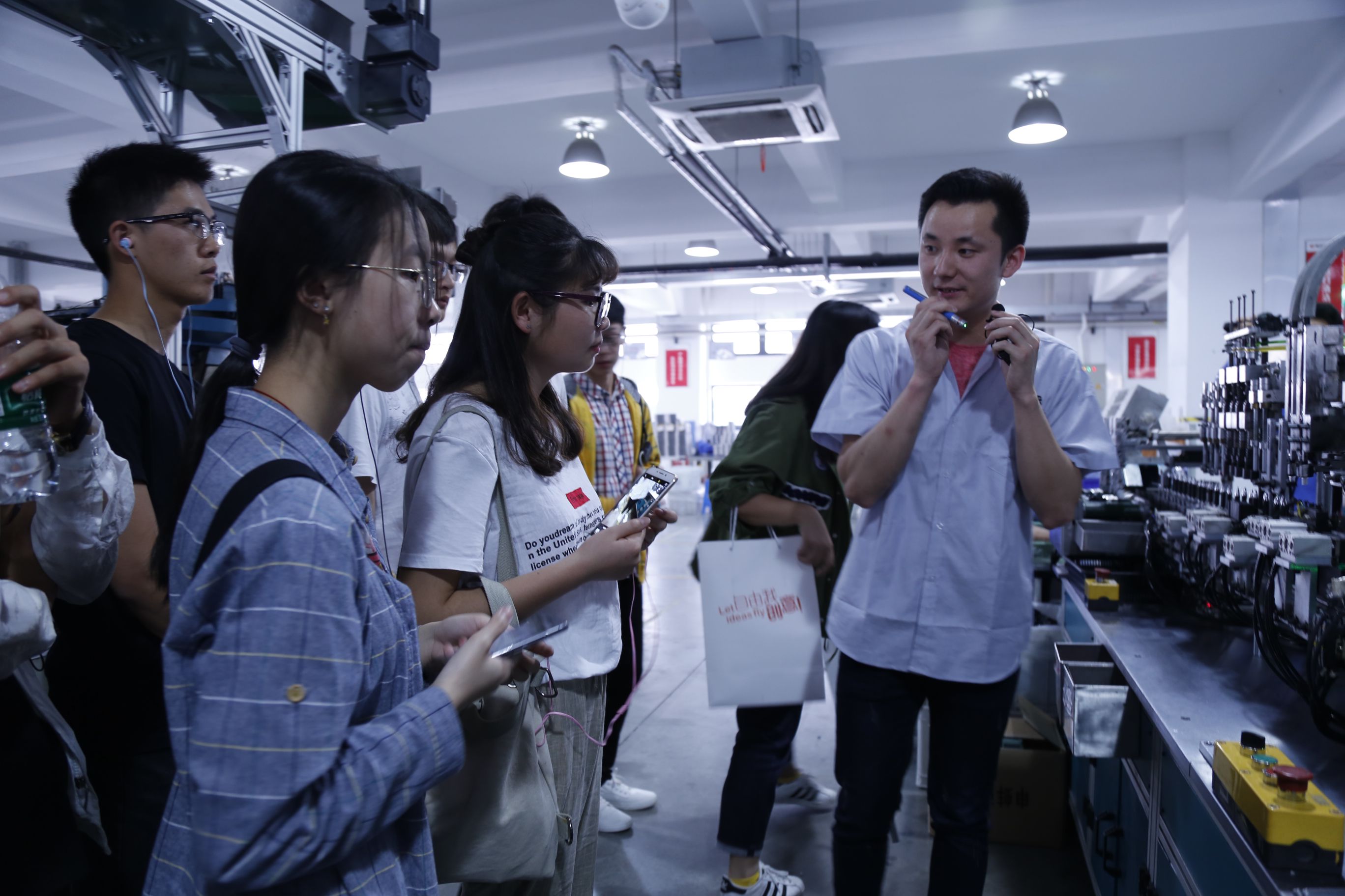圖為同學們參觀制筆二廠自動裝配車間