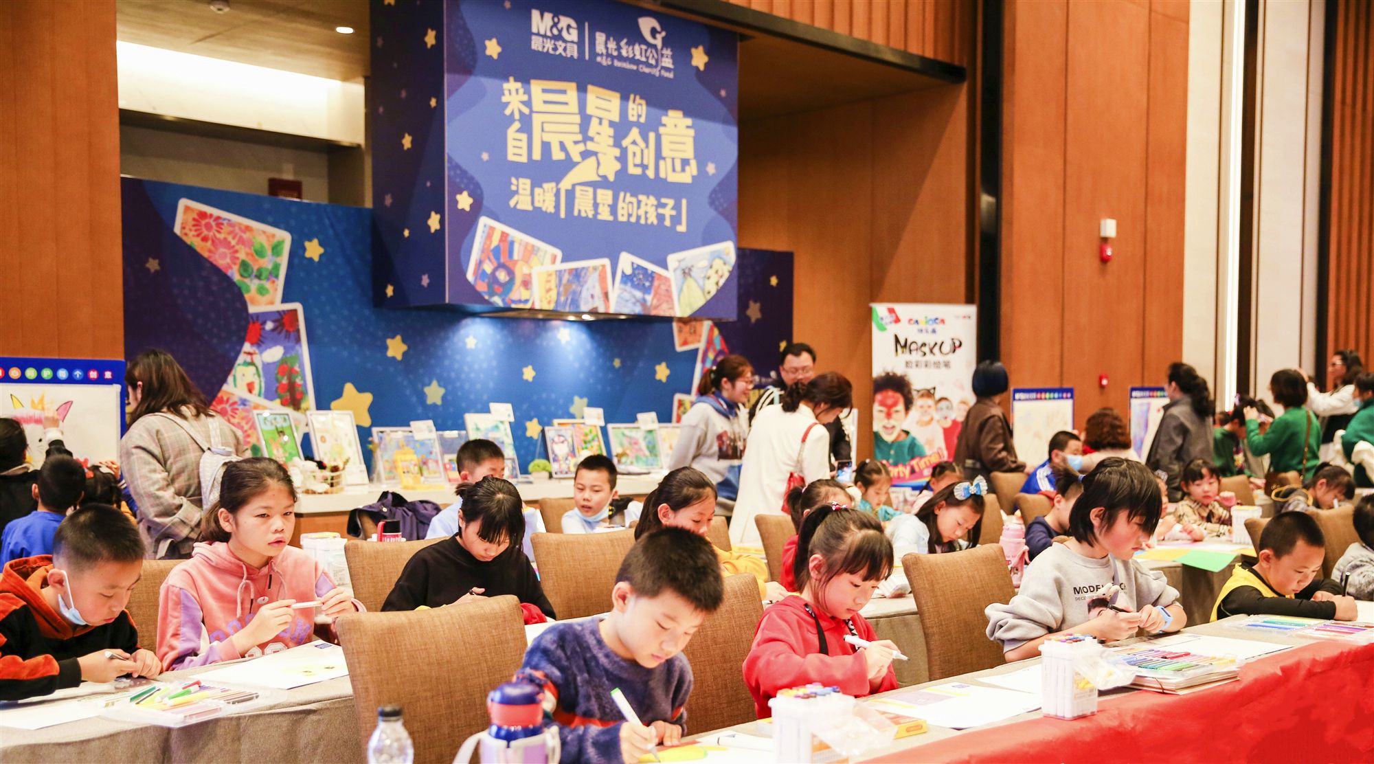 (晨光文具杯繪畫大賽同步進(jìn)行,孩子們現(xiàn)場使用晨光兒美產(chǎn)品繪畫)